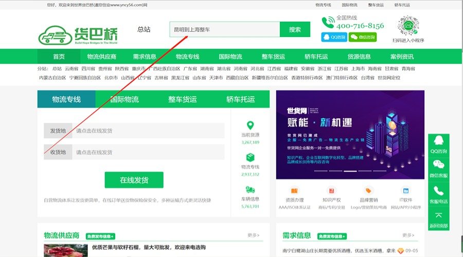 整車物流價格查詢,就到世界貨巴橋網(wǎng)搜索對應(yīng)線路“起始地到目的地整車“即可得到參考價格,其是目前致力于提供有價值的整車物流專線價格查詢的公共服務(wù)品牌,按照起始地目的地專線,不斷上傳單條線路價格查詢,內(nèi)容