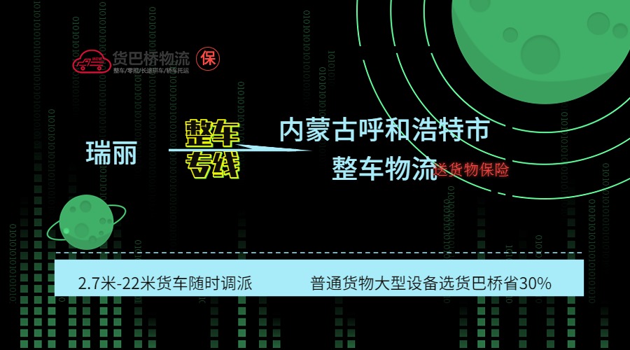 瑞麗到呼和浩特專業(yè)整車貨運物流,可提供2.7米-17.5米各類普通車、特種車車型,找貨巴橋運費省30%,快速反應,及時派車,咨詢就送禮,從平臺付款,就送5-50...