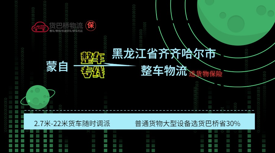 蒙自到齊齊哈爾專業整車貨運物流,可提供2.7米-17.5米各類普通車、特種車車型,找貨巴橋運費省30%,快速反應,及時派車,咨詢就送禮,從平臺付款,就送5-50...