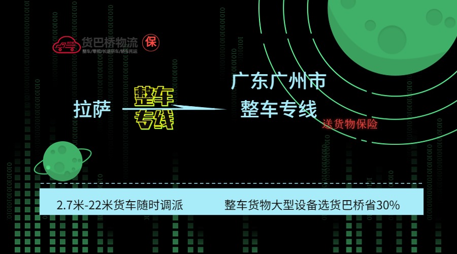 拉薩到廣州專業(yè)整車貨運(yùn)物流,可提供2.7米-17.5米各類普通車、特種車車型,找貨巴橋運(yùn)費省30%,快速反應(yīng),及時派車,咨詢就送禮,從平臺付款,就送5-50萬單...