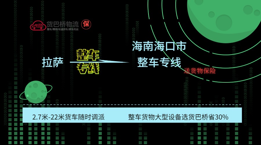 拉薩到海口專業(yè)整車貨運(yùn)物流,可提供2.7米-17.5米各類普通車、特種車車型,找貨巴橋運(yùn)費省30%,快速反應(yīng),及時派車,咨詢就送禮,從平臺付款,就送5-50萬單...