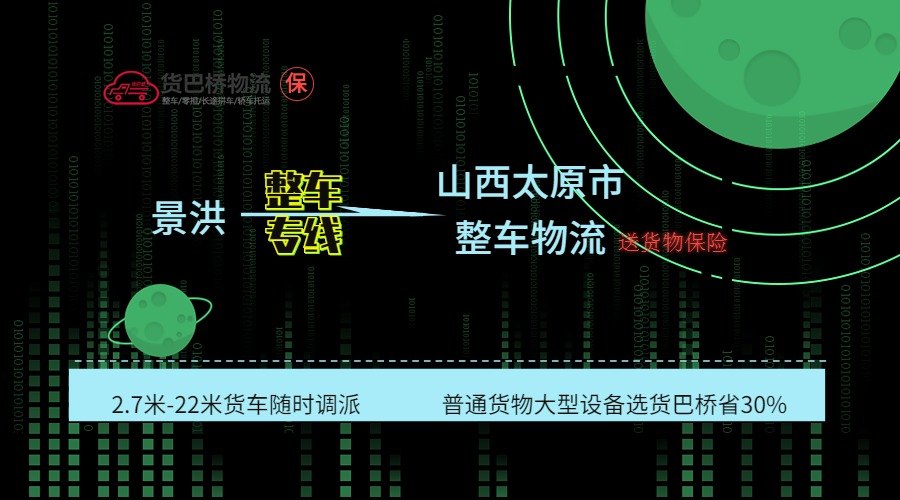 景洪到太原市專業整車貨運物流,可提供2.7米-17.5米各類普通車、特種車車型,找貨巴橋運費省30%,快速反應,及時派車,咨詢就送禮,從平臺付款,就送5-50萬...