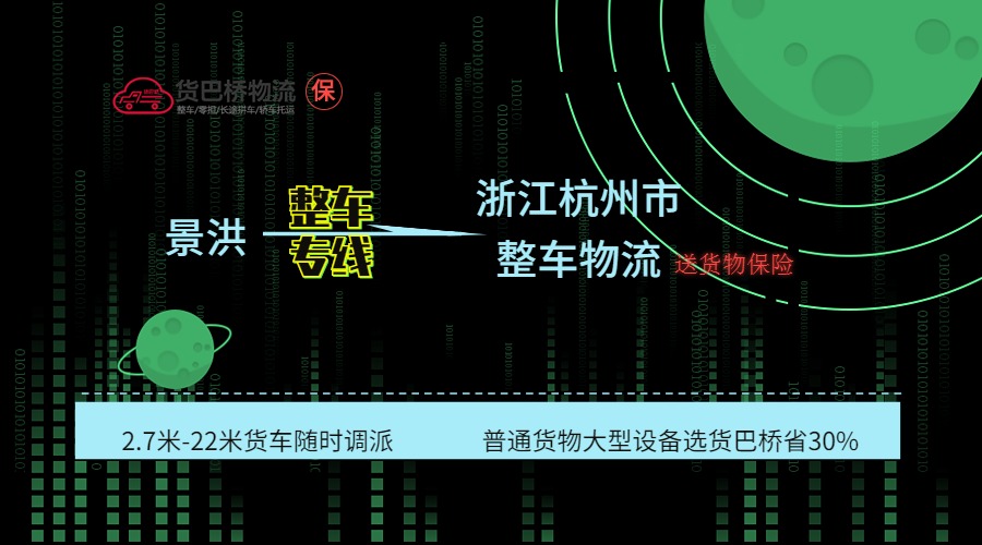 景洪到杭州市專業整車貨運物流,可提供2.7米-17.5米各類普通車、特種車車型,找貨巴橋運費省30%,快速反應,及時派車,咨詢就送禮,從平臺付款,就送5-50萬...