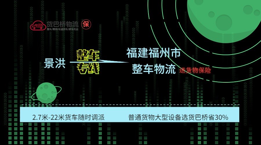 景洪到福州市專業整車貨運物流,可提供2.7米-17.5米各類普通車、特種車車型,找貨巴橋運費省30%,快速反應,及時派車,咨詢就送禮,從平臺付款,就送5-50萬...