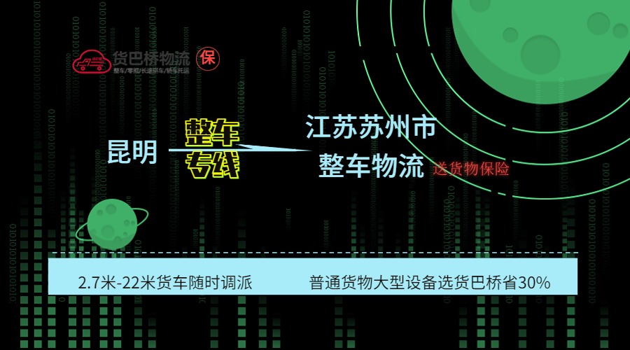 昆明到蘇州專業整車貨運物流,可提供2.7米-17.5米各類普通車、特種車車型,找貨巴橋運費省30%,快速反應,及時派車,咨詢就送禮,從平臺付款,就送5-50萬單...