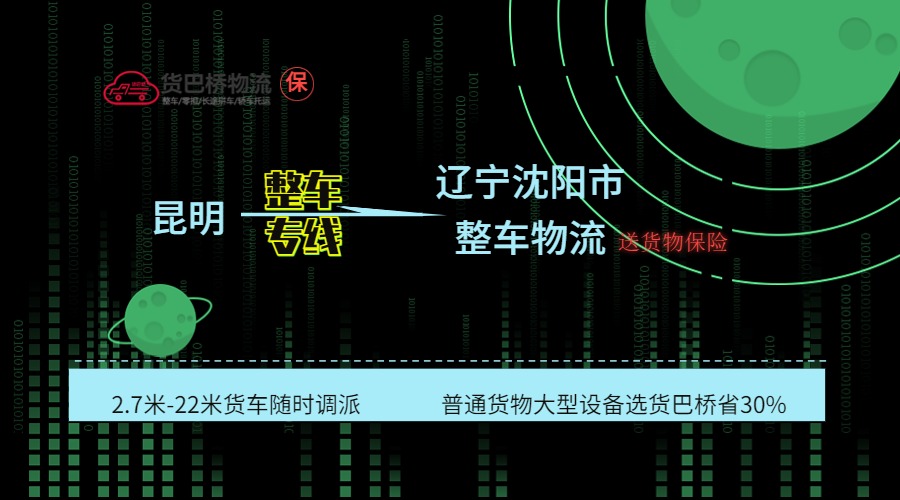 昆明到沈陽專業整車貨運物流,可提供2.7米-17.5米各類普通車、特種車車型,找貨巴橋運費省30%,快速反應,及時派車,咨詢就送禮,從平臺付款,就送5-50萬單...