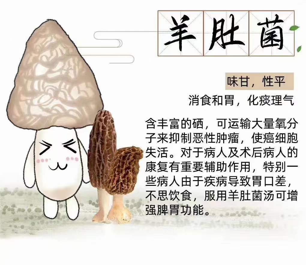 羊肚菌:含豐富的硒,可運輸大量氧分子來抑制惡性腫瘤,使癌細胞失活